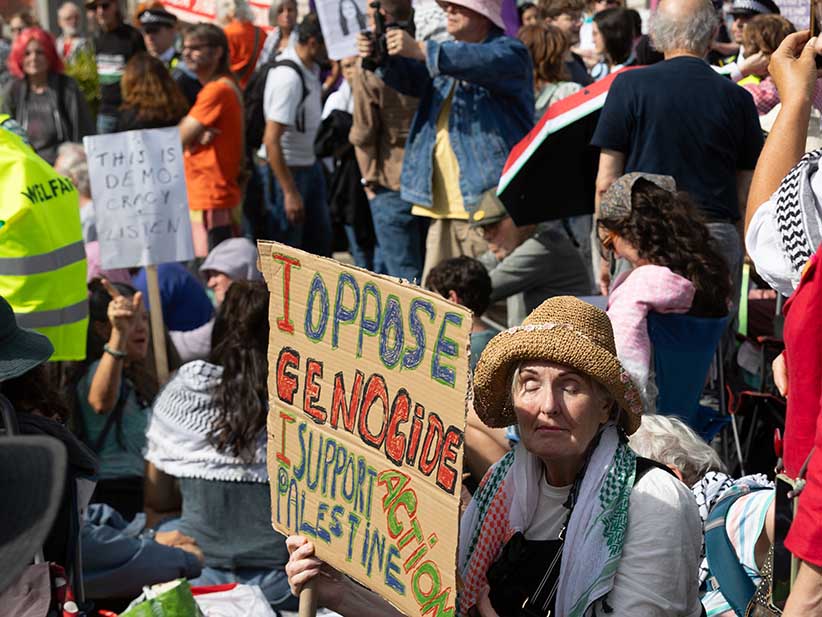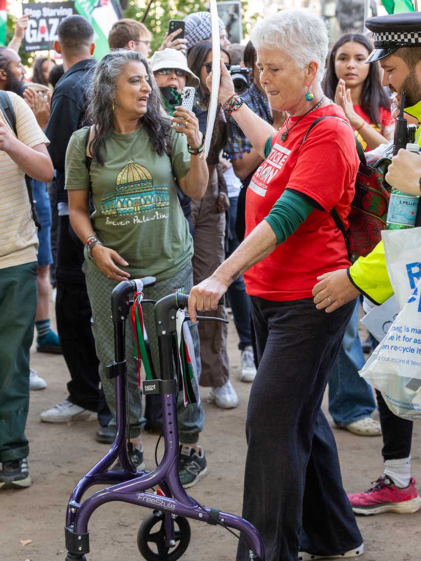 … to a London where, four days earlier, close to 900 men and women, young and old – some pushing zimmer frames or in wheelchairs – were arrested for the crime of holding placards of support for a non violent direct action group seeking to disrupt said genocide.